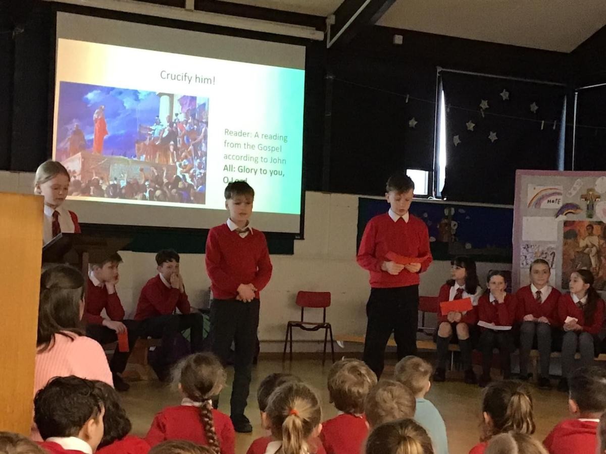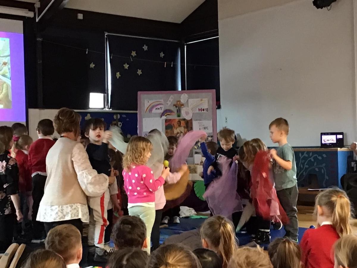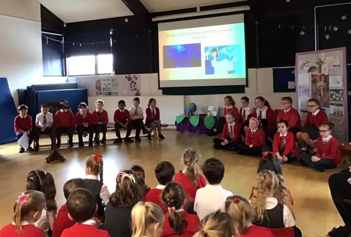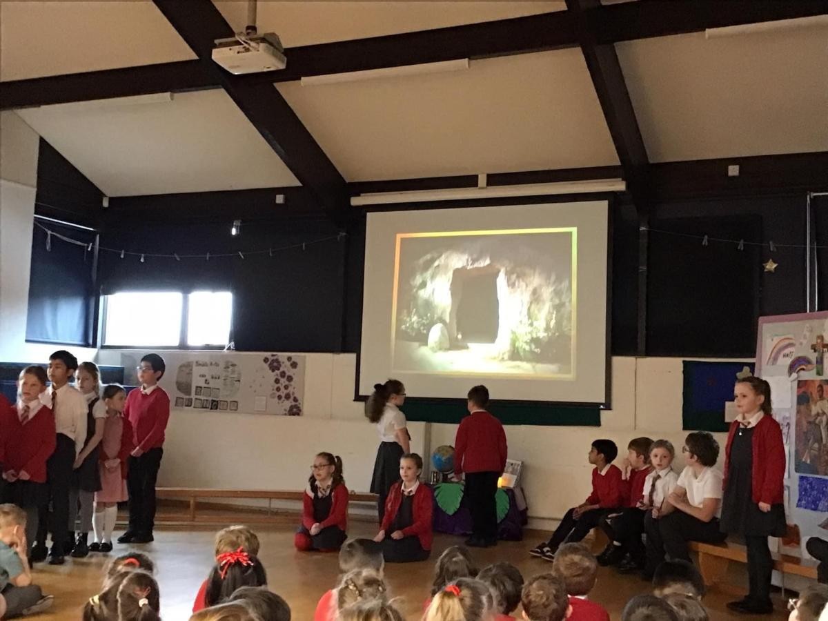 On the last day of the Spring Term we celebrated 'Holy Week in a Day'. Each class led us in a reflection about a different part of Jesus' journey through Holy Week. Acorns started the day with a joyful enactment of Palm Sunday, Maple then told us the story of the Last Supper. After break Oak helped us to think about Jesus praying in the Garden of Gethsemane and Peter's Denial and later led a moving reflection on the crucifixion. To end the day, Willow finished the story with the joy and happiness of Easter Day. We were delighted to welcome so many parents, friends and parishioners to share this special day with us.